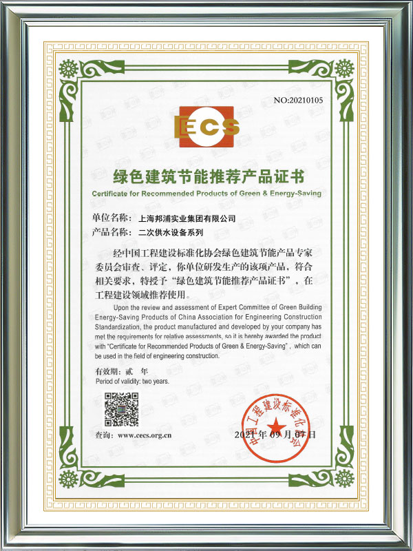 Green Building Energy Saving Recommended Product Certificate